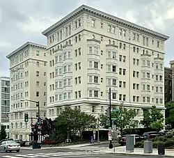 The Churchill Hotel Near Embassy Row is a hotel located at 1914 Connecticut Avenue NW in Washington, D.C., United States. The Beaux-Arts style building was erected in 1902 as The Highlands apartment house, designed by local architect Arthur B. Heaton.[2] It was later renovated into a hotel, but still kept some of its historic features.[1] According to the Churchill Hotel, its rooms contain elements of the original building. [1] The Churchill is a member of Historic Hotels of America, the official program of the National Trust for Historic Preservation.[3]
