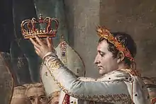 The Coronation of Napoleon[lower-alpha 1] (French: Le Sacre de Napoléon) is a painting completed in 1807 by Jacques-Louis David, the official painter of Napoleon, depicting the coronation of Napoleon at Notre-Dame de Paris. The oil painting has imposing dimensions – it is almost 10 metres (33 ft) wide by a little over 6 metres (20 ft) tall. The work is on display at the Louvre Museum in Paris.