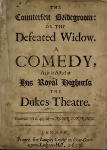 The Counterfeit Bridegroom; Or, The Defeated Widow is a 1677 comedy play.[1] The work's authorship is usually credited to Aphra Behn has been alternatively been attributed to Thomas Betterton.[2] It was inspired by Thomas Middleton's Jacobean play No Wit, No Help Like a Woman's.
