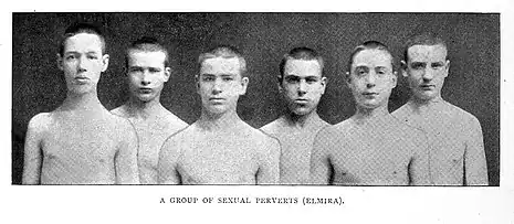 The criminal consists of seven chapters preceded by a preface written by Ellis.[1] An appendix with forty illustrations is provided at the end of the volume. The appendix is divided into four parts. Appendix A provides detailed explanations for all the plates. Appendix B summarises the study of criminality in children. A picture of the life and treatment applied to prisoners in Elmira Reformatory is depicted in part C. Criteria for the physical medical investigation of criminals and their descriptions are outlined in appendix D.[1]