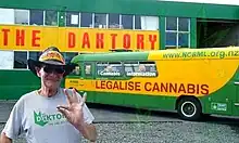 The Daktory was a warehouse catering for the sale and consumption of cannabis in New Lynn, West Auckland, New Zealand.[1] The Daktory operated in open defiance of New Zealand drug legislation prohibiting the cultivation, possession, sale and consumption of cannabis; its founder Dakta Green was jailed for 23 months for the operation of the warehouse.[2] Members were called 'Daktas' and are registered under a pseudonym of their choice. They paid a monthly fee to join which allowed them access to The Daktory or they paid a $5 general entry charge. Patrons had to be 18 years of age or older. Once inside, members would openly smoke cannabis using any of the many paraphernalia provided. At various times cannabis was also openly grown in and sold from the Daktory. Nationwide branches of the Daktory were planned for all major New Zealand cities and other areas of strong demand for cannabis.[3][4]