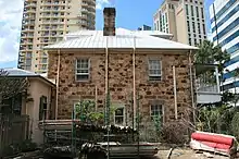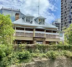 This residence, originally known as Adelaide House, was constructed for Dr William Hobbs who arrived in Brisbane in May 1849 as the ship's surgeon on board the Chaseley, the second of Reverend John Dunmore Lang's immigrant ships. Hobbs was a prominent medical figure. In 1853 Hobbs commissioned Andrew Petrie to build a two-storey house on a hill overlooking the river.[1]