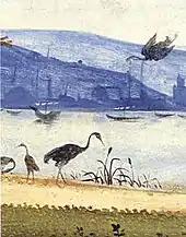 Piero's interest in the story of Procris might have been occasioned by one of the first Italian plays based on a mythological subject, Niccolò da Correggio's Cefalo, which had its premiere at a wedding feast in the Castello Estense (21 January 1487) and was printed in Venice in 1507.[3] The story is supposed to have been adapted from Plautus rather than Ovid's Metamorphoses and, in contrast to earlier treatments of the story, it ends happily.[4] If so, the painting should be read as a warning to the newlyweds against the dangers of jealousy which brought about the death of Procris.[3]
