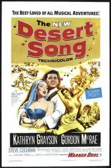 The Desert Song is a 1953 film version in Technicolor of Sigmund Romberg's operetta. It is the third film version of the operetta, the third made by Warner Bros., and the second in full three-strip Technicolor. Although it was released in 1953, it was not made in widescreen; at that time Twentieth-Century Fox held the rights to Cinemascope, which was introduced that year in the film The Robe.