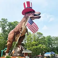 ![]() Monty T. Rex, a 14-feet tall T-Rex mascot of The Dinosaur Place, on Route 85 in Montville, Connecticut. | |