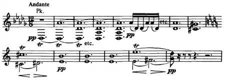 The Enchanted Lake, Op. 62, is a symphonic poem by Anatoly Lyadov, subtitled "fairy tale scene", dedicated to Nikolai Tcherepnin and premiered on 21 February 1909 in Saint Petersburg under the baton of the dedicatee. On the borders of symbolism and impressionism, The Enchanted Lake is a single work, not built on a musical theme. André Lischke said of it that "The whole bewitching effect is due to the texture of the instrumentation, to the harmonic metamorphoses, and to the figurations which translate the quivering of the water (divided strings) and the sparkling of the stars which are reflected there (flute, celesta), harp)".[1]