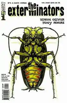 The Exterminators is an American monthly comic book series, published under the Vertigo imprint by DC Comics. The comic was created by writer Simon Oliver and artist Tony Moore and follows the employees of the Bug-Bee-Gone extermination company.[1] The book is notable for its graphic and darkly humorous take on the extermination business. The first issue was released on January 4, 2006 and the series finished at issue #30, initially been envisioned as a 50-issue series.