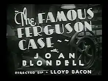 The Famous Ferguson Case is a 1932 American pre-Code crime film starring Joan Blondell and directed by Lloyd Bacon. Grant Mitchell and Vivienne Osborne appear in support.[1]