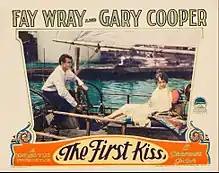The First Kiss is a 1928 American sound romantic drama film directed by Rowland V. Lee and starring Fay Wray and Gary Cooper.[1] While the film has no audible dialog, it features a synchronized musical score with sound effects and a theme song. Based on the short story Four Brothers by Tristram Tupper, the film is about a Chesapeake Bay fisherman who turns to pirating in order to be rich enough to marry a society girl.