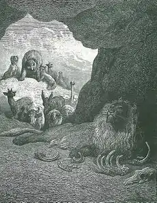 The Fox and the Sick Lion is one of Aesop's Fables, well known from Classical times and numbered 142 in the Perry Index.[1] There is also an Indian analogue. Interpretations of the story's meaning have differed widely in the course of two and a half millennia.