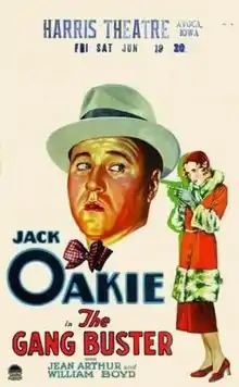 The Gang Buster is a 1931 American Pre-Code comedy film directed by A. Edward Sutherland, and written by Percy Heath and Joseph L. Mankiewicz. The film stars Jack Oakie, Jean Arthur, William "Stage" Boyd, Wynne Gibson, William Morris and Francis McDonald. The film was released January 17, 1931, by Paramount Pictures.[1][2]