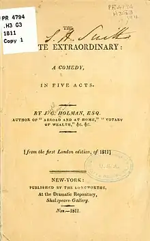 The Gazette Extraordinary is a comedy play by the British writer Joseph George Holman, published and first performed in 1811. It premiered at the Theatre Royal, Covent Garden in London on 23 April 1811[1] [2] The original cast included Charles Mayne Young as Lord De Mallory, Joseph Shepherd Munden as Heartworth, William Barrymore as William Clayton, John Fawcett as Doctor Suitall, Charles Murray as Randall, Nannette Johnston as Lady Julia Sandford, Mary Catherine Bolton as Miss Alford, Mary Ann Davenport as Mrs Leech and Sarah Booth as Ellen Meredith. It was acted eleven times during its initial run.[3]
