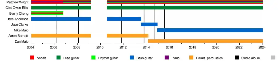 The Getaway Plan are an Australian rock music band, which formed in 2004. Founding mainstays are Matthew Wright on lead vocals, piano and rhythm guitar and Clint Ellis on lead guitar.[2] They were joined in 2014 by Dan Maio on drums, and his brother, Mike Maio on bass guitar. Former long-term members are Dave Anderson on bass guitar and Aaron Barnett on drums and percussion.