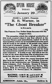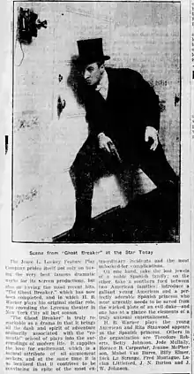 The Ghost Breaker is a 1914 American silent drama film directed by Cecil B. DeMille and Oscar C. Apfel and based on the 1909 Broadway play of the same name by Paul Dickey and Charles W. Goddard. The film was distributed by Paramount Pictures under the Famous Players–Lasky banner.[2]