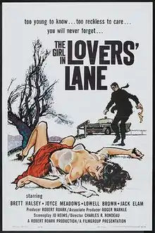 The Girl in Lovers' Lane is a 1960 American film directed by Charles R. Rondeau following the adventures of two drifters who get involved with the residents of the little town of Sherman.[2] The working title of the film was The Young and the Damned. It was released by Filmgroup as a double feature with The Wild Ride.