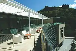 The Glasshouse Hotel in Edinburgh, Scotland, opened in June 2003[1] and is located on Greenside Place, next to the Playhouse Theatre. The hotel is on the edge of Edinburgh's New Town build into the 160-year-old façade of Lady Glenorchy's Church. The hotel has 77 bedrooms (of which 20 are suites, all named after a specific brand of whisky) and two acre roof garden, overlooking Calton Hill.