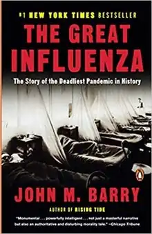 The Great Influenza: The Story of the Deadliest Plague in History (originally subtitled The Epic Story of the Deadliest Pandemic in History) is a 2004 nonfiction book by John M. Barry that examines the Spanish flu, a 1918-1920 flu pandemic and one of the worst pandemics in history. Barry focuses on what was occurring in the United States at the time and attempts to place it against the background of American history and within the context of the history of medicine.[1] The book describes how the flu started in Haskell County, Kansas, USA, and spread to the U.S. Army training camp Camp Funston, Kansas, USA, and around the world through troop movements during World War I.