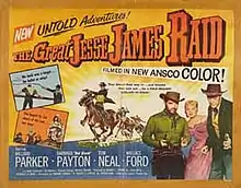 The Great Jesse James Raid is a 1953 American Ansco Color Western film directed by Reginald LeBorg and starring Willard Parker, Barbara Payton, and Tom Neal.[1][2][3] This was the only film for Tom Neal and Barbara Payton to co-star together, as their ill-famed love affair essentially derailed the movie careers of both of them.