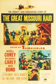 The Great Missouri Raid is a 1951 American Western film directed by Gordon Douglas and written by Frank Gruber. The film stars Wendell Corey, Macdonald Carey, Ellen Drew, Ward Bond, Bruce Bennett, Bill Williams and Anne Revere. The film was released on February 15, 1951, by Paramount Pictures.[1][2][3]
