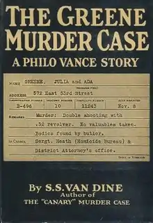 The Greene Murder Case is a 1928 mystery novel by S. S. Van Dine. It focuses on the murders, one by one, of members of the wealthy and contentious Greene family. This is the third in the series of Philo Vance whodunits, and the first of the Vance books not inspired by a real-life crime.