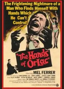 The Hands of Orlac (a.k.a. Hands of the Strangler) is a 1960 British-French horror film directed by Edmond T. Gréville, starring Mel Ferrer, Christopher Lee, and Dany Carrel,[1] and based on the novel Les Mains d'Orlac by Maurice Renard.