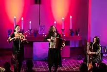 The Henry Girls are an Irish folk and roots music group. The band consists of three sisters: Karen, Lorna and Joleen McLaughlin. All three have studied music at university level and are multi-instrumentalist, utilizing fiddles, ukulele, banjo, guitar, harp, mandolin, piano, and accordion.[1] The Henry Girls often sing in harmony[2] and their sound has been described as a mix of traditional Irish folk music and Americana.[3] They have contributed backup vocals to Mary Black's album Stories from the Steeples.[1] They have also collaborated with Session Americana, Dónal Lunny, Moya Brennan, Jennifer Kimball, and The Fox Hunt.[3]