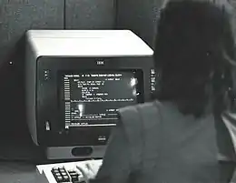 An Informatics General computer programmer using XEDIT on an IBM 3279 terminal