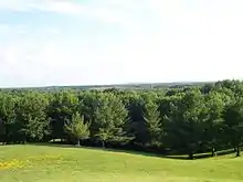 The park consists of a 148 acres (60 ha) plot on high land.[2] Approximately 500,000 acres (200,000 ha) are visible from the overlook point of the plaza.[1]