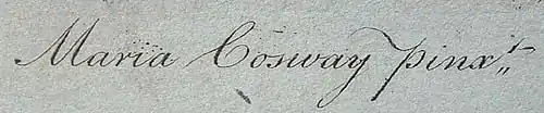 On the lefthand side under the engraving: "Maria Cosway pinxt." Pinxt was an abbreviation of the Latin, pinxit, which meant "she painted"