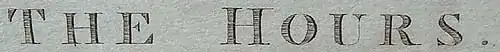 The Hours is a stipple engraving by a master of the technique, Francesco Bartolozzi (1725–1815), published on April 4, 1788, from the print shop of Thomas Macklin, at No. 39 Fleet Street, London. The print is based upon a painting by Maria Cosway (1760–1838). The dancing hours, or nymphs of Greek mythology, were a pictorial representation of the 1742 poem "Ode on the Spring" by British poet Thomas Gray (1716–1771). The poem begins: