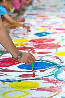 The artist Hervé Tullet is the conductor of the project.[9] He transmits to the public his creative techniques using colors, papers, brushes, scissors and other materials conducive to the visual arts.[10]