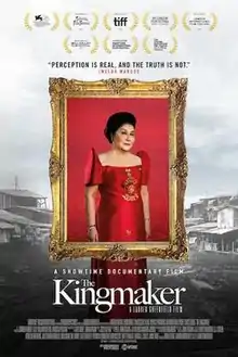 The Kingmaker is a 2019 documentary film written and directed by Lauren Greenfield, featuring the political career of Imelda Marcos[6] with a focus on the Marcos family's efforts to rehabilitate the family's image and to return to political power,[7][8] including her plans to see her son, Bongbong, become President of the Philippines,[9][10] and the alliance that Bongbong and Imee Marcos established with Rodrigo Duterte in his bid to win the 2016 Philippine presidential election.[3][11]