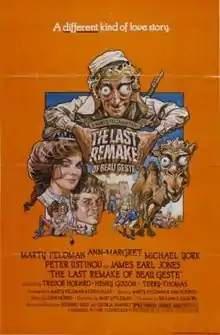 The Last Remake of Beau Geste is a 1977 American historical comedy film[3] directed, co-written and starring Marty Feldman. It is a satire loosely based on the 1924 novel Beau Geste, a frequently-filmed story of brothers and their adventures in the French Foreign Legion. The humor is based heavily upon wordplay and absurdity. Feldman plays Digby Geste, the awkward and clumsy "identical twin" brother of Michael York's Beau, the dignified, aristocratic swashbuckler.