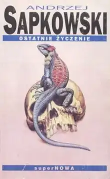 The first collection of Andrzej Sapkowski's short stories was simply titled The Witcher and published by Reporter in 1990.[5] SuperNowa acquired the publishing rights to the series that same year and published their first entry, Sword of Destiny, in 1992.[6] In 1993, they published The Last Wish to replace Reporter's collection as the first book in their official order. It includes the same stories, except "The Road with No Return", with the addition of "The Voice of Reason", "A Question of Price", and "The Last Wish".[5]