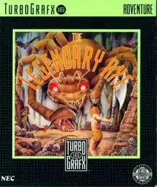 The Legendary Axe (魔境伝説 Makyō Densetsu in Japan) is a horizontal platform video game for the TurboGrafx-16. It was developed and published by Victor Musical Industries in Japan and by NEC in North America. It was released in Japan on September 23, 1988 and in North America as a TurboGrafx-16 launch title on August 29, 1989. In the game, the player controls Gogan, a barbarian whose girl, Flare, was kidnapped by the cult of Jagu. The player must navigate through six platforming levels, armed with a legendary axe named "Sting" to defeat Jagu and his minions and rescue Flare. The game features a rechargeable "strength meter" that determines how much damage is dealt from the axe to enemies.