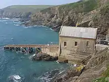 The Lizard Lifeboat Station can refer to several Royal National Lifeboat Institution lifeboat stations located on the Lizard in Cornwall, United Kingdom.[1] The first was established at the southernmost point of the peninsula in 1859. Since then successive stations have all been in operation at different locations on The Lizard. The current station is located at Kilcobben Cove 0.5 mi (0.80 km) east of the village of Lizard.[2]