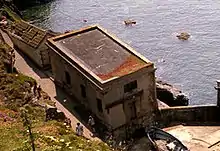 However the location of the first lifeboat station on the cliff above Polpeor Cove was not ideal as it made launches a long and precarious operation in rough sea and weather. On 2 January 1866 the lifeboat broke up after it was launched on exercise during a storm. It was pushed on to rocks causing the death of its Coxswain Peter Mitchell and crew members Richard Harris and Nicholas Stevens.[1] As a tribute to the loss, the RNLI gave £130 to the local lifeboat fund.[1] (Location: 49°57′32.53″N 5°12′22.77″W / 49.9590361°N 5.2063250°W)