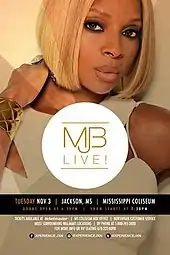 The London Sessions Tour (known as MJB Live! in the United States)[1] is the eighth headlining concert tour by American recording artist, Mary J. Blige. The tour supports Blige's twelfth studio album, The London Sessions. Beginning June 2016, the tour started in Europe playing various music festivals. During the fall of 2015, Blige briefly performed in the United States.