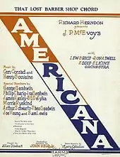 Jimmy Durante recorded a humorous song called "I'm the Guy Who Found the Lost Chord", which he also sings in the 1947 film This Time for Keeps.[18] George and Ira Gershwin wrote a song called "That Lost Barber Shop Chord", which was included in their 1926 revue Americana.[19] The Moody Blues produced an album called In Search of the Lost Chord in 1968. According to keyboardist Mike Pinder, the title was inspired by the Durante song.[20]