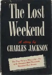 The Lost Weekend is Charles R. Jackson's first novel, published by Farrar & Rinehart in 1944. The story of a talented but alcoholic writer was praised for its powerful realism, closely reflecting the author’s own experience of alcoholism, from which he was temporarily cured. It served as the basis for the classic 1945 Oscar winning film adaptation.[1]
