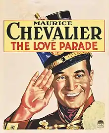 The Love Parade is notable for being both the film debut of Jeanette MacDonald and the first "talkie" film made by Ernst Lubitsch. The picture was also released in a French-language version called Parade d'amour.[4] Chevalier had thought that he would never be capable of acting as a Royal courtier, and had to be persuaded by Lubitsch.[5] This huge box-office hit appeared just after the Wall Street crash, and did much to save the fortunes of Paramount.