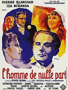 The Man from Nowhere (French: L'Homme de nulle part) is a 1937 French drama film directed by Pierre Chenal and starring Pierre Blanchar, Isa Miranda and Catherine Fonteney.[1] It was made at the Cines Studios in Rome, and based on Luigi Pirandello's 1904 novel Il fu Mattia Pascal. A separate Italian-language version of the film was also produced.