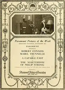 The Martyrdom of Philip Strong is a 1916 American drama silent film directed by Richard Ridgely and written by Everett McNeil, Francis Neilson and Charles Sheldon. The film stars Robert Conness, Mabel Trunnelle, Janet Dawley, Bigelow Cooper, Helen Strickland and Frank A. Lyons. The film was released on November 3, 1916, by Paramount Pictures.[1][2]