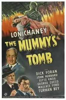 The Mummy's Tomb is a 1942 American horror film directed by Harold Young and starring Lon Chaney Jr. as Kharis the mummy. Taking place 30 years after the events of The Mummy's Hand, where Andoheb (George Zucco) has survived and plans revenge on Stephen Banning (Dick Foran) and his entire family in Mapleton, Massachusetts. With the help of the high priest Mehemet Bey (Turhan Bey), Andoheb and the mummy Kharis (Lon Chaney Jr.) Bey takes up a job as a caretaker of a graveyard. At the first full moon, the mummy is fed tanna leaves which allow him to break into the Banning residence and kill the now elderly Stephen. Banning's son then seeks assistance from Babe Hanson (Wallace Ford), one of the members of the original Banning expedition to Egypt to stop Andoheb and Kharis.