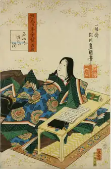 Emperor Ichijō's court, dominated by the powerful Fujiwara clan, was the seat of two rival imperial empresses, Teishi and Shōshi, each with ladies-in-waiting who were proficient writers producing works honoring their mistresses and the Fujiwara clan.[5] The three most noteworthy Heian-era diaries in the genre of Nikki Bungaku – Murasaki's The Diary of Lady Murasaki, Sei Shōnagon's The Pillow Book and Izumi Shikibu's Izumi Shikibu Nikki – came from the empresses' courts.[3] Murasaki's diary covers a discrete period, most likely from 1008 to 1010.[7] Only short and fragmentary pieces of the diary survive and its importance lies, in part, in the revelations about the author, about whom most of the known biographical facts come from it and from her c. 1014 short poetry collection, the Murasaki Shikibu shū (or Poetic Memoirs).[7]