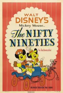 The Nifty Nineties is an animated short film produced in Technicolor by Walt Disney Productions and released to theaters on June 20, 1941, by RKO Radio Pictures. The animated short was directed by Riley Thomson and animated by Ward Kimball, Walt Kelly, Fred Moore, Claude Smith, David Swift, and Les Clark with effects animation by Art Fitzpatrick.[3] It was the 113th short in the Mickey Mouse film series to be released, and the fourth in that year.[4] The film stars Mickey and Minnie Mouse and romanticizes the decade of the 1890s.