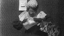 The Old Maid's Valentine is a 1900 British short silent comedy film, directed by George Albert Smith, which features the titular Miss Pimple receiving an unpleasant surprise on 14 February. The film, according to Michael Brooke of BFI Screenonline, "is essentially a facial - a medium close-up shot of a single performer whose changing expression constitutes virtually all the film's dramatic action." David Fisher points out that, "the flapping of the sheet of paper and the movement of the calendar betray the open-air set," which, "makes it difficult to read the message: Just like Mama," whilst, "the remarkably well-behaved cat," which, "sits patently licking its paws," "suggests that Smith may have already learned the trick of smearing the cat's fur with food."[1][2]