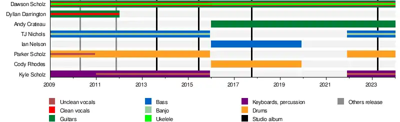 • Kyle Scholz – vocals (2011-2015, 2021–present), keyboards and percussion (2009–2015, 2021–present)