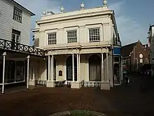 Most of the Pantiles is listed: mostly built early to mid 19th century. No.7 is c.1660; 39-41 was formerly the Gloster Tavern; the Corn Exchange[6] and Royal Victoria Hotel are both early 19th century.[7]