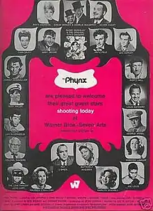 The Phynx is a 1970 American comedy film directed by Lee H. Katzin[1] about a rock and roll band named The Phynx and their mission in foreign affairs. The group is sent to Albania to locate celebrity hostages taken prisoner by Communists. The last part of the film, supposedly set in Albania, was filmed in the Spanish city of Ávila, recognizable by its medieval walls.